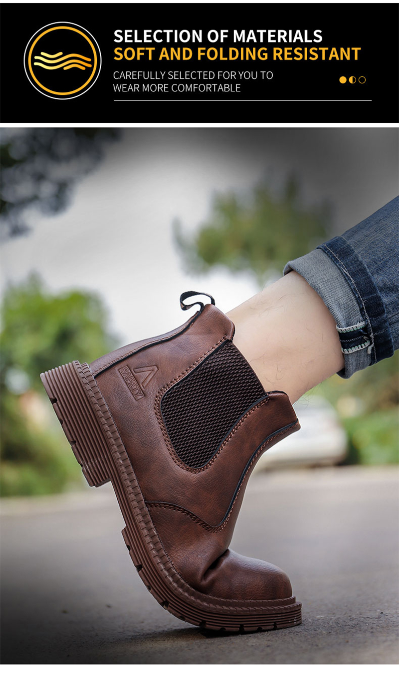 PU Leather Work Safety Boots Men's Chelsea Boots Men's Work Shoes Men's Winter Boots Men's Steel Toe Shoes